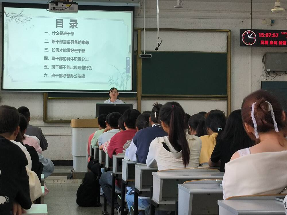 随后,徐老师系统阐述了优秀班干部应具备的核心素养。她提出,班干部需具备“三大支柱”:一是担当胸怀,敢于承担责任,乐于服务集体;二是行动魄力,做到雷厉风行、善作善成;三是全方位能力——即善于运用“眼、耳、口、心、手、脚”,做到眼观六路、耳听八方、口能沟通、心系同学、手勤事务、脚踏实地。