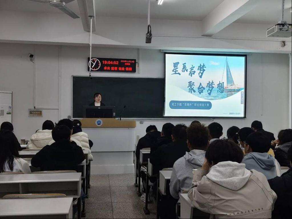 成长赛道中,参赛选手们结合学院专业讲座和职业发展规划课程中所学的知识,全面且深入地展示了个人的职业目标、成长规划路径、实践行动方案、应对挑战的策略以及灵活的动态调整机制。应化32504班的计鸿鑫同学畅谈了她大学四年的学习与实践计划,展现了化工新人筑梦未来的蓬勃朝气。