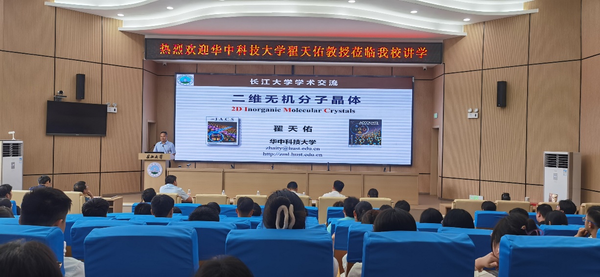 9月15日下午,国家杰出青年科学基金获得者、华中科技大学博士生导师翟天佑教授应赖璐院长邀请为DB电竞娱乐师生作了一场关于“二维无机分子晶体”的学术报告。肖围副院长主持报告会,赖璐院长、王丽书记及部分青年教师、研究生聆听了报告。