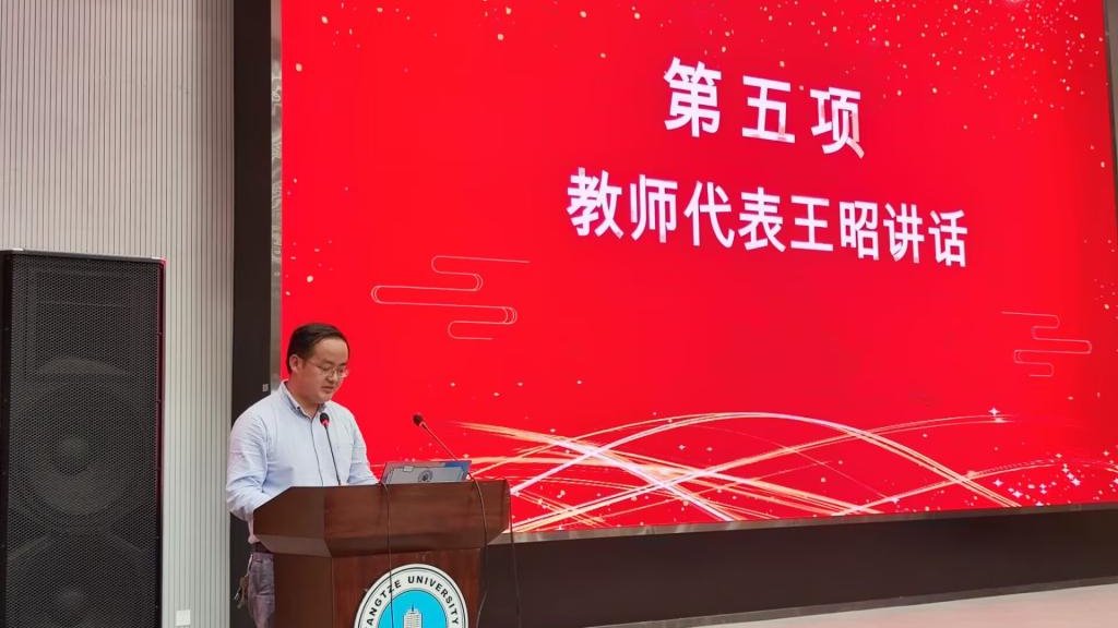 教师代表王昭老师向全体新生致以诚挚的欢迎。他勉励同学们珍惜宝贵学习时光,涵养家国情怀,勇攀科学高峰。针对研究生新生,他还就科研规划、学术素养等方面提出了中肯建议,鼓励大家踏实走好每一步成长之路。