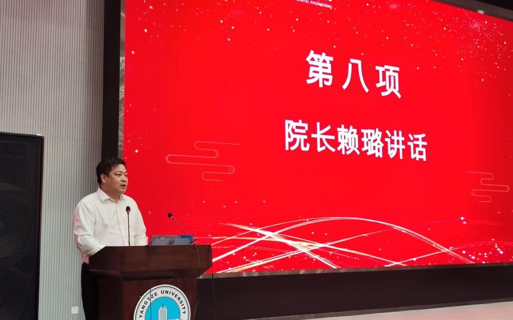 典礼尾声,院长赖璐发表主题讲话。他以“上善若水,自律自信,格物致知”为核心,深入阐释了学院的育人理念,并围绕这一主题,向全体新生明确了未来的学习要求与发展方向,为大家开启了大学生涯的重要“第一课”。